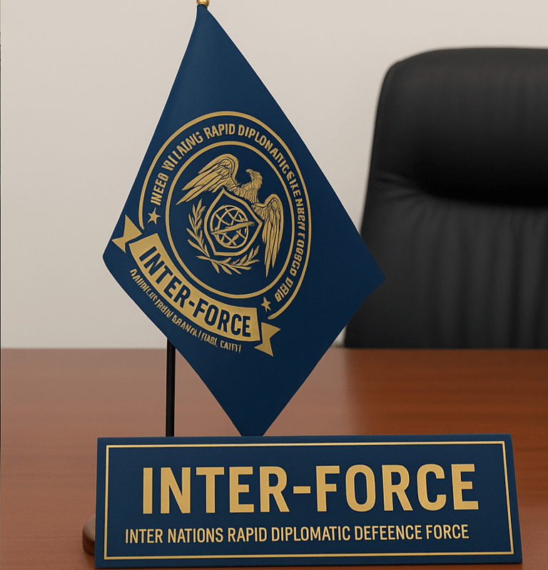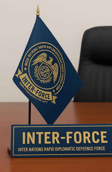 Inter-Force is an International Quasi-Judicial Mechanism and Civil Defence Council, allied with UN, EU, GCC, AU, NATO, SAARC, Commonwealth, Arab League, ICJ, ICC, INTERPOL, EUROPOL, and AUPOL, fostering global law enforcement and security cooperation.